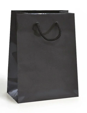 Luxusní papírová dárková taška v černé lesklé barvě s bavlněným uchem, vhodná pro menší kousky oblečení, topy, trika, doplňky nebo dětské oblečení, v dnešní době již nutnost každé prodejny i eshopu. Oficiální online velkoobchod vybavení prodejen a eshopu, značková luxusní originální móda, kabelky i módní doplňky LuxuryFashionOutlet.eu, vám k vašemu nákupu za velkoobchodní ceny, doporučuje PAPÍROVÉ DÁRKOVÉ TAŠKY pro maloobchodní prodejny a eshopy za skvělé ceny.