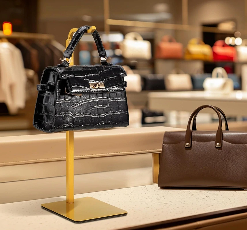 Kvalitní lusuxní nastavitelný držák na kabelky zlatého provedení i vzhledu vhodné pro luxusnější butiky, prodejny i prezentaci dražších kabelek. Oblíbený produkt také z řad našich influencers a videomakers zákazníků při natáčení videí a prezentací kabelek při prodeji a recenzích.